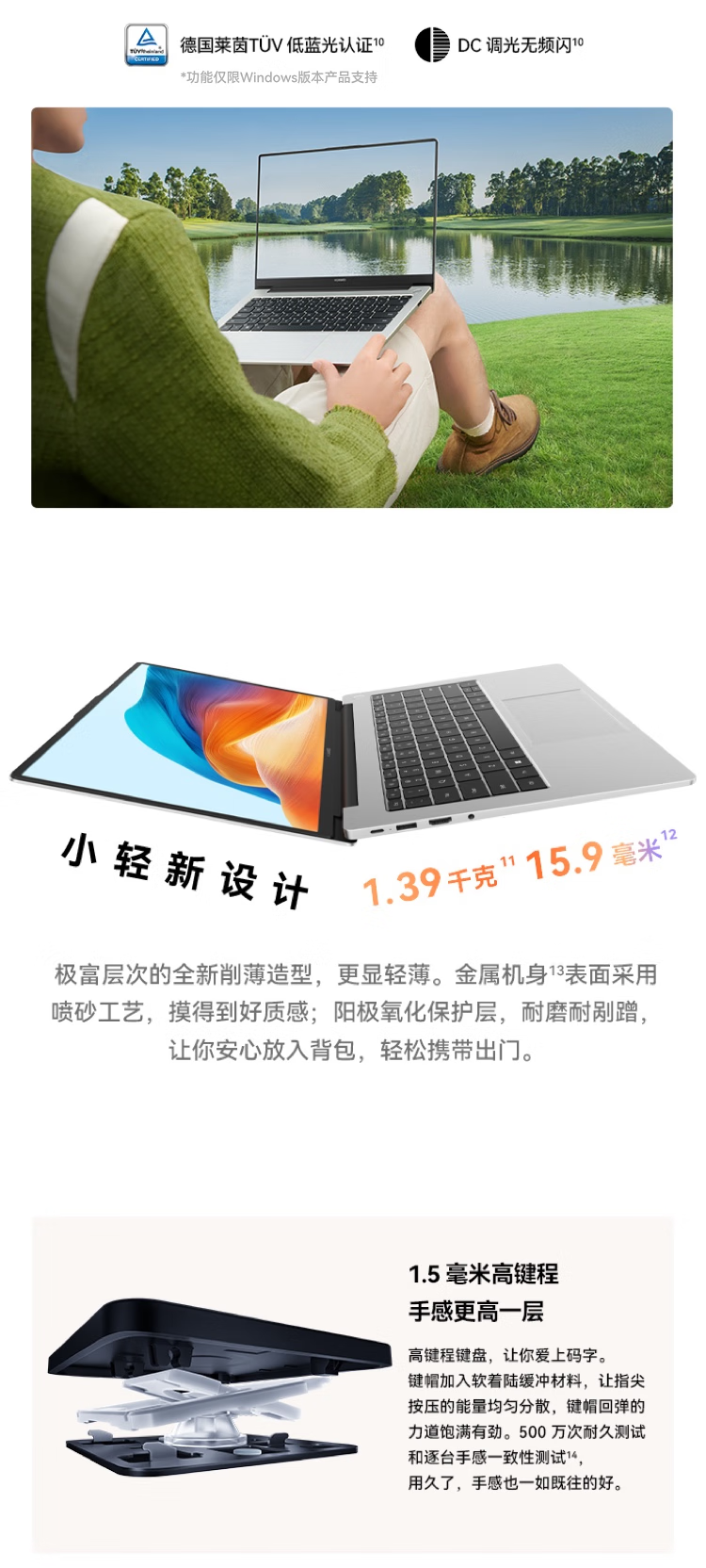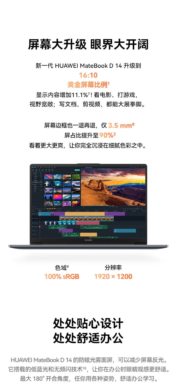 华为MateBook D 14 店铺预装Windows版 轻薄办公笔记本电脑 13代酷睿处理器i5 16G 1T皓月银