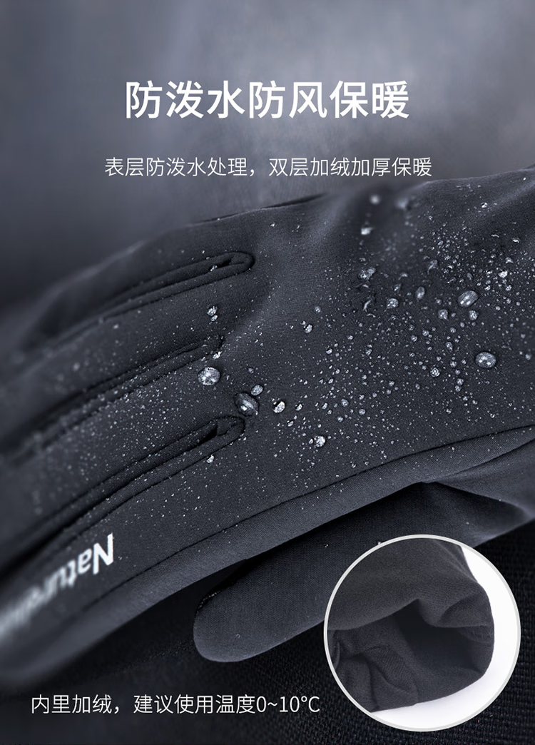 Naturehike挪客骑行手套男冬季加绒保暖手套户外登山防风防泼水防滑跑步手套 水墨黑 XL