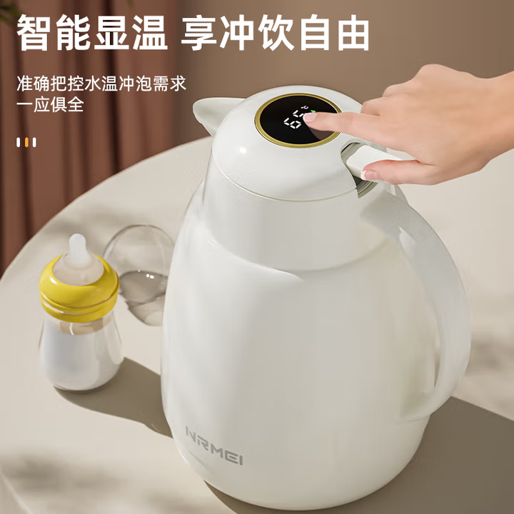 恩尔美(nRMEi)保温壶家用暖水壶大容量玻璃内胆热开水瓶宿舍家庭用办公室水壶 奶芙白 2L 【显温款/红胆技术】